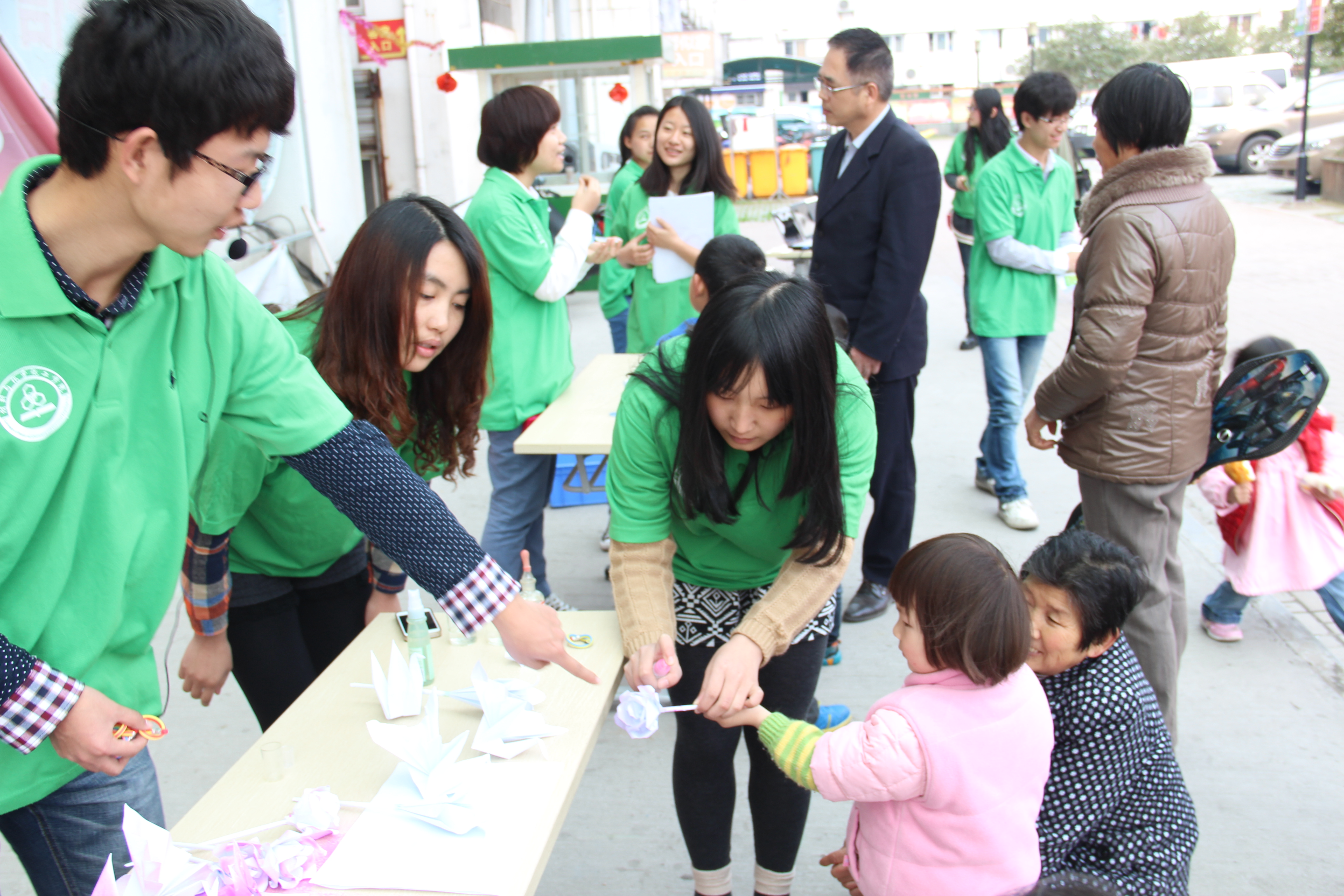 活动伊始,在工作人员忙碌地准备期间,就有不少居民对本次的活动感到好奇,纷纷询问活动开展时间和内容。本次宣传活动共由四个模块组成,每个模块都与生活密切相关,旨在提高社区居民对生活与化学的了解。第一个模块是一个小魔术——“白花变红花”,工作人员首先为折好的花朵和小动物喷上低浓度的氢氧化钠溶液,然后在居民前喷上无色的酚酞试剂。原来是白色的花朵或小动物变成了红色,吸引了不少小朋友的目光。经过工作人员的进一步分析,小朋友们对化学产生了浓厚的兴趣。接下来的活动针对的是杭城严重雾霾天气,工作人员向居民介绍医用的、普通的、袖珍的、真正防雾霾等的口罩的各自功用,让居民能够真正地了解到自己平时带的口罩和真正需要的口罩的差别。第三个模块是对各类水质进行科学检测,工作人员准备了矿泉水、可乐和居民家中的水,对它们的PH和电导率分别进行了检测,并且还为他们讲解了对人体有好处的水究竟是怎样的。居民们对此很关心,表现出极大的热情。最后还播放关于生活中的小窍门的视频,有如何去油污去血渍,如何挑选好的陈醋,如何清洗家中油壶和擦拭窗户框等。经过工作人员在旁的细心讲解,很多居民都认为这些窍门很有用,表示回家就要试验一番。