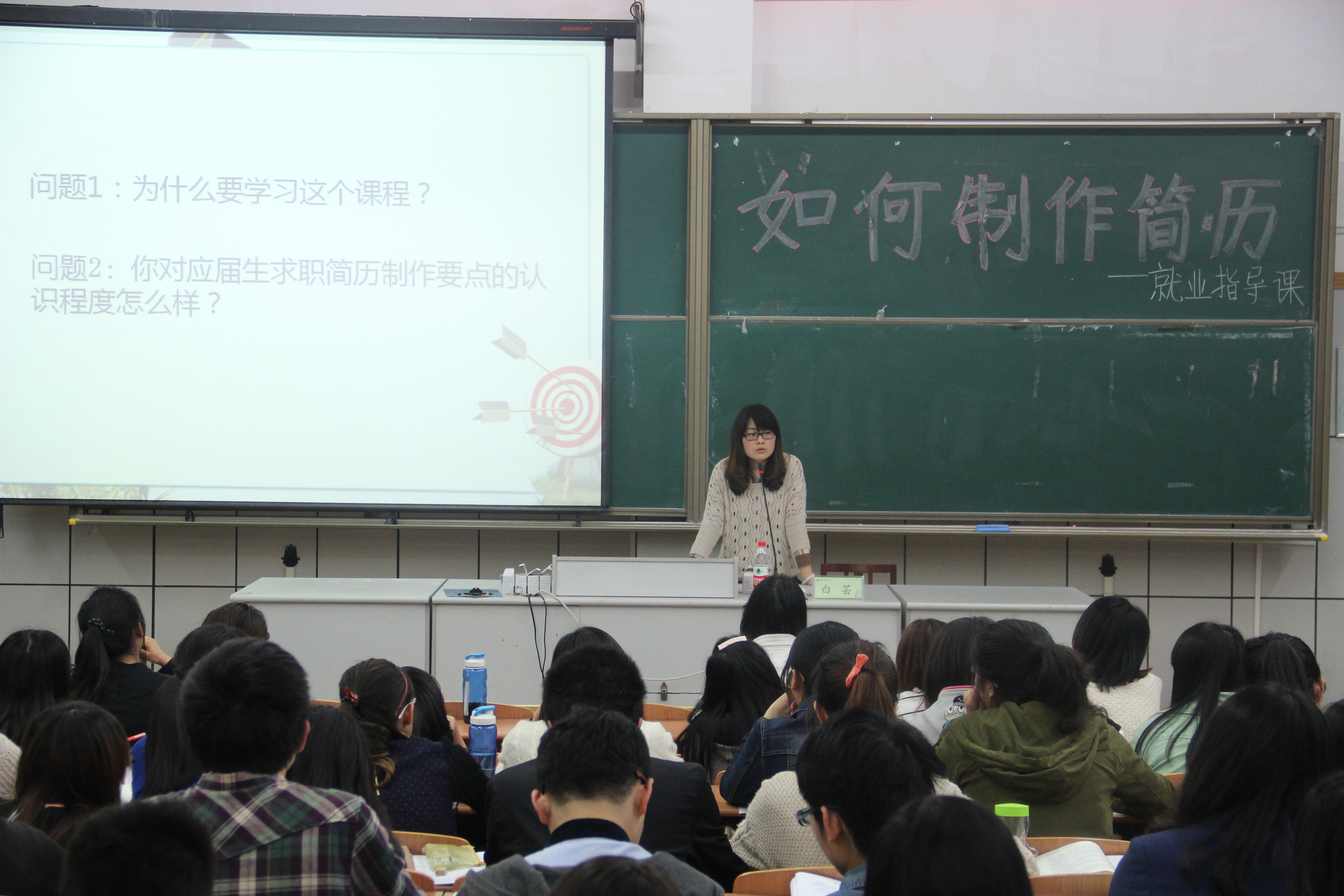职业发展中心邀请院团委副书记白芸老师,在A楼218教室为学生讲解如何制作简历。