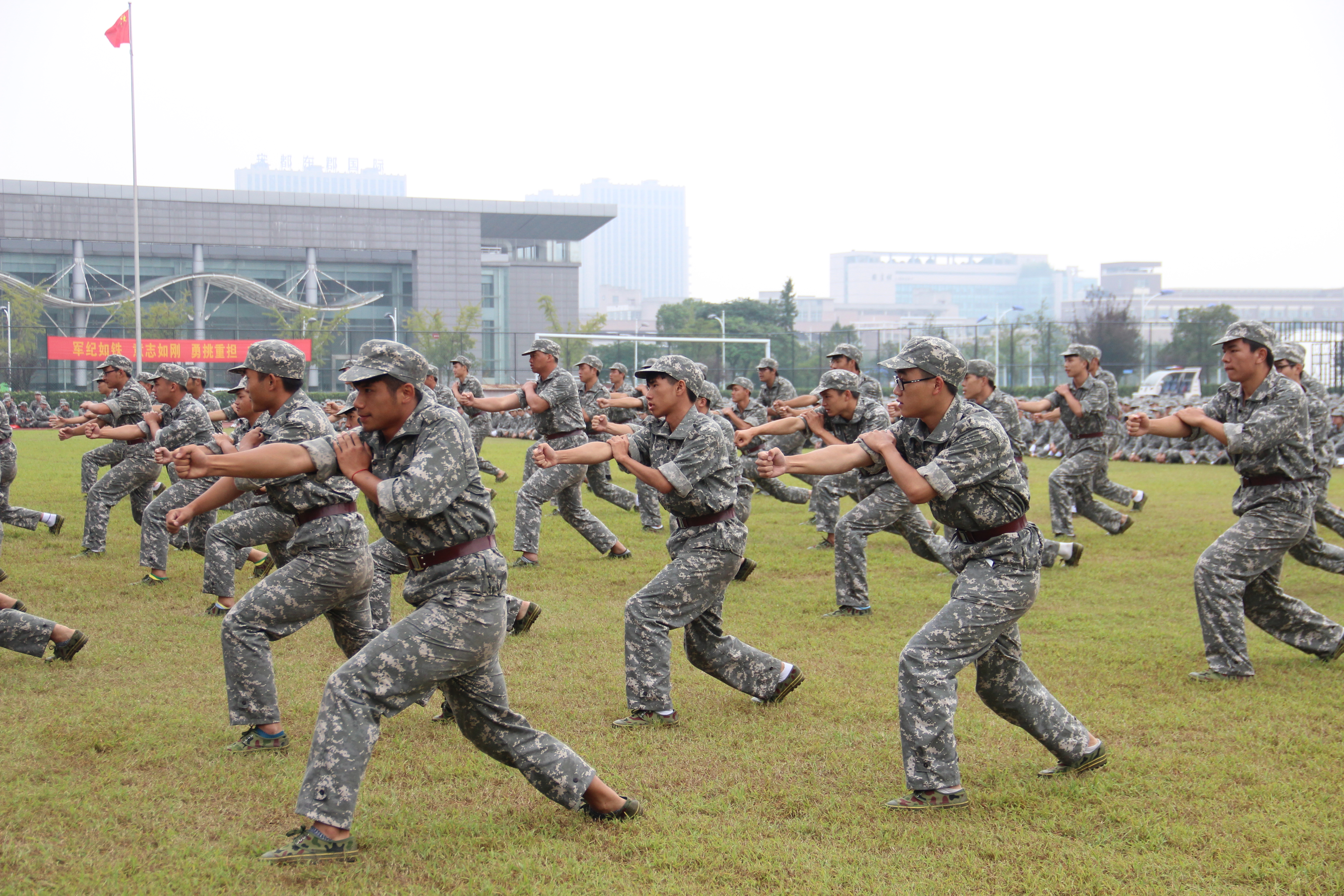 结束分列式,全体人员欣赏由体育学院和钱江学院共同带来的军体拳,刚劲有力的动作无不展现了军人般的意志,句句“杀杀杀”的口号呐喊出保家卫国的决心。同样,“战地救助”表演也博得在场观众的阵阵掌声。