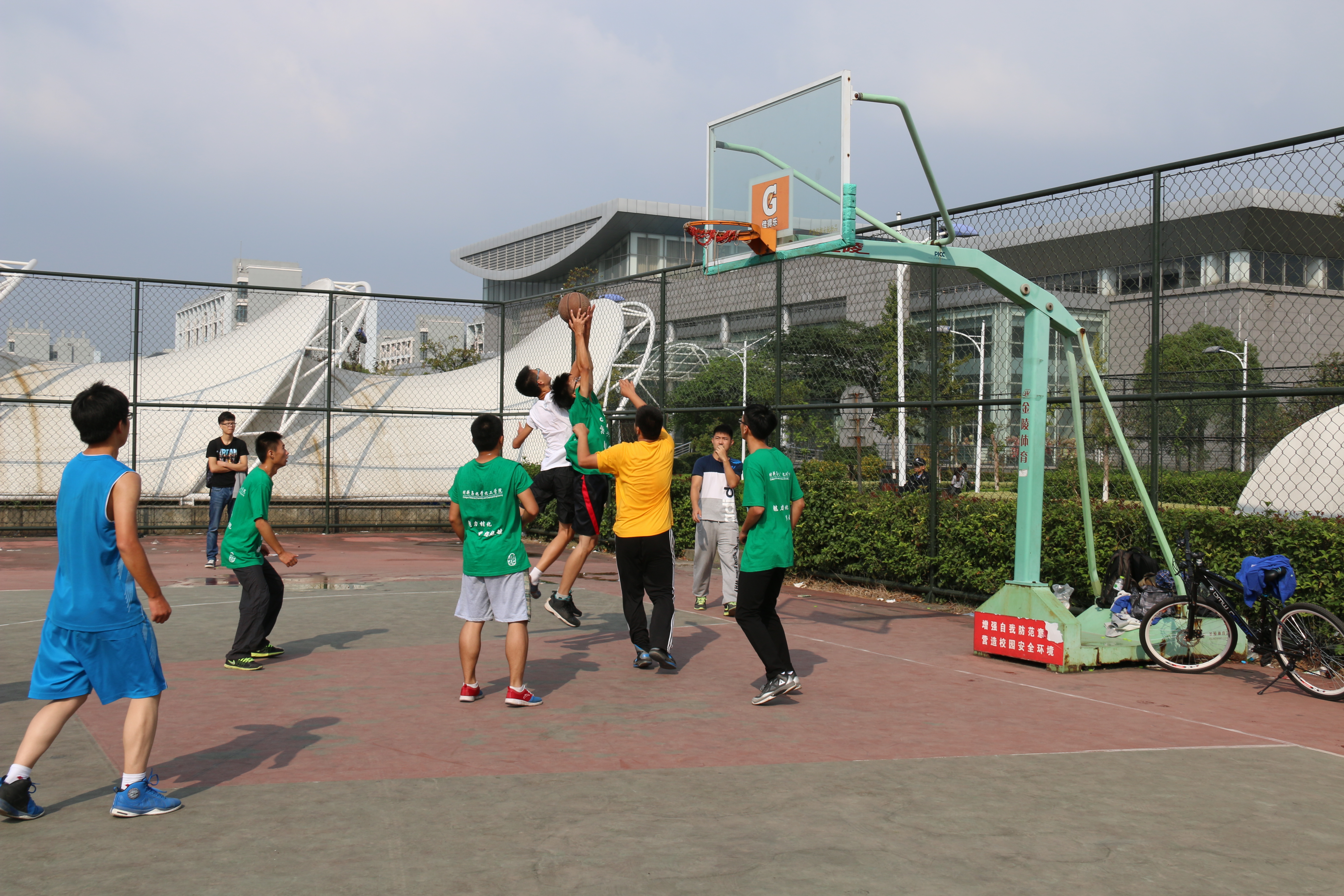 比赛伊始,两队实力旗鼓相当,难分上下,为摆脱迟迟未下一城的状况,化师142班勇猛进攻,夺下第一个进球。应化141班也不甘示弱,凭借队员之间默契的配合,利用抢断和快攻等方法,奋起直追,取得了领先的地位。赛场上,两班队员你争我夺,相互牵制,双目直盯那枚跳跃的篮球,不管是激烈地抢篮板,还是积极地防守,队员们丝毫不敢懈怠。恰恰就是这些激情四射的场面为本场比赛营造了一种紧张激烈的氛围。即使在比分胶着的争夺中,也偶有队员出现幽默性的失误,为这场紧张的比赛增添了一抹欢声笑语。球场上的表现精彩绝伦,球场边也是一道亮丽的风景线,观战同学们的声声加油,响彻整个篮球场,显现了整个团体的凝聚力量。随着一声哨响,球场上的队员们以一颗不服输的心坚持到了最后一刻,随后双方队员相互握手,微笑着相约下一次球场上的对决。