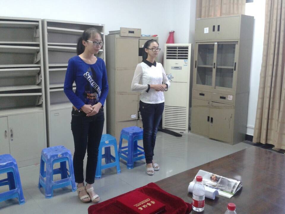 选手们经过简单的自我介绍后,分别以自己最满意的站姿来展现其积极向上的形象。面对评委的问题,选手们也有条不紊地回答,表现出真诚礼貌的材化学子特质。最后选手们以走教室2圈的形式来结束此次面试。招新过程中,大多数女生变现出其自信,镇定,矜持的一面;有些男生还是有些许紧张回答问题时有点犹豫紧张,但总体活动十分顺利。