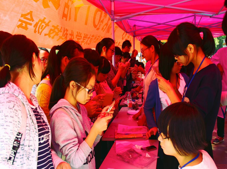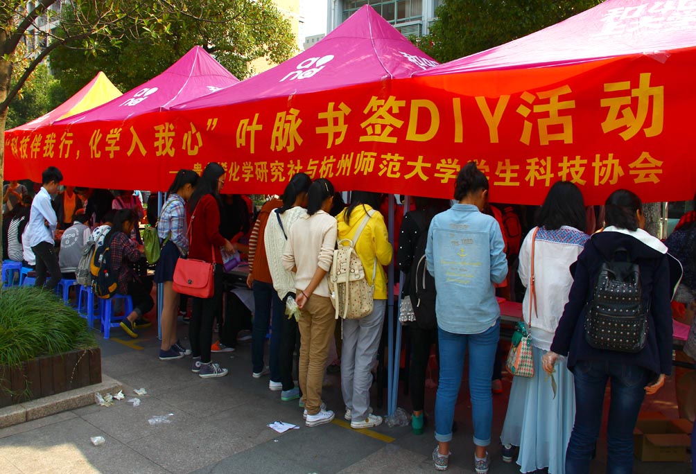 学生科技协会和材化学院贵之烯化学研究社联合举办的“科技伴我行,化学入我心”叶脉书签DIY活动在二期广场隆重举办。