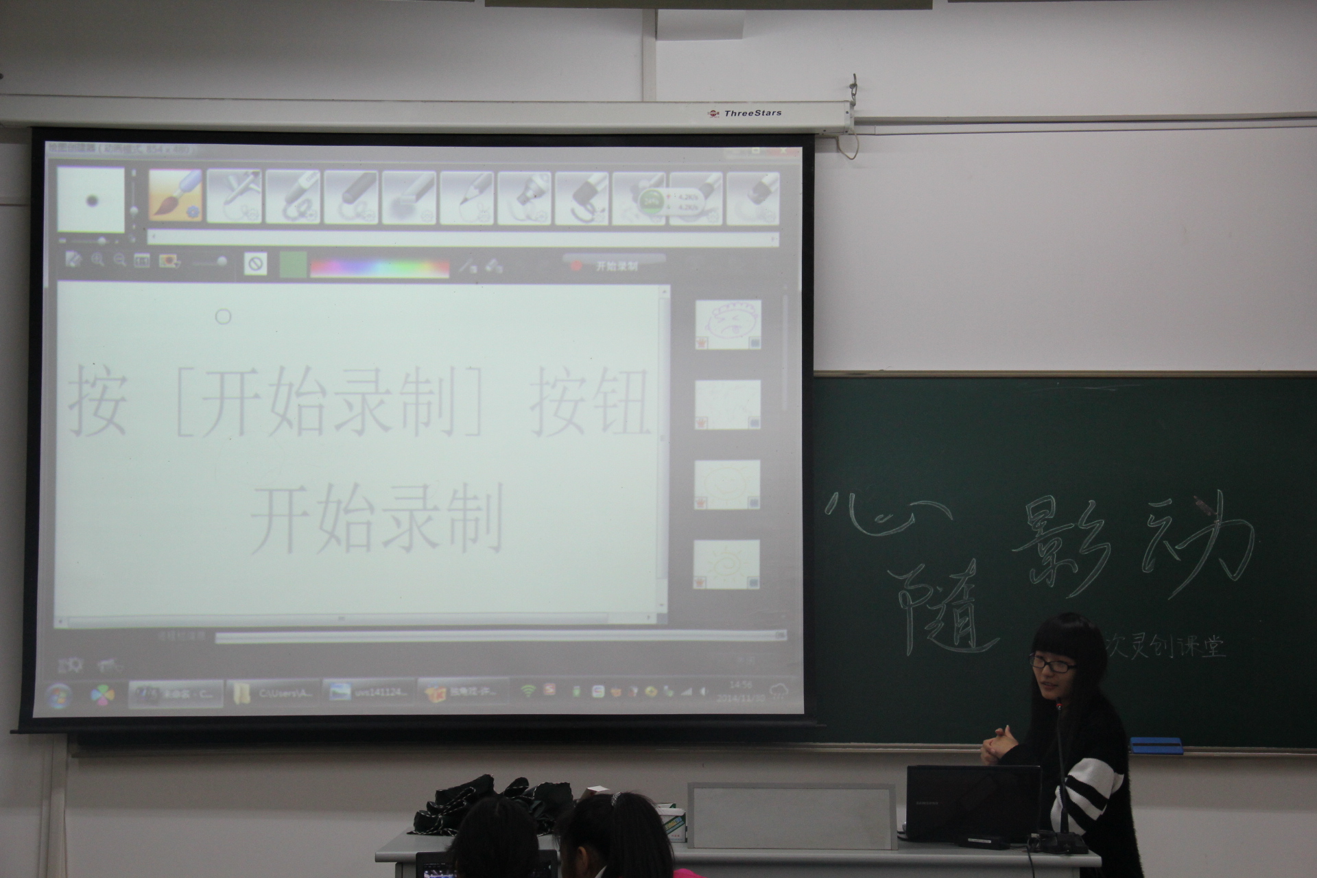 一、主讲人朱琼瑶向会员们罗列了本堂课的内容及其实用性,其中包括屏幕捕获、快照、参数设置、去字幕和绘图创建器等几个部分。在课堂过程中,小讲师细致讲解每一部分的重点内容,并且边讲解边操作,不时加以重复讲解,以加深会员们的记忆。每讲解一部分,小讲师都会留出时间让会员们自行操作。通过现场操作的方式,会员们都表现出了对所授内容的兴趣,一个个埋头认真学习着。同时,小讲师也为有疑问的会员进行耐心地解答。接近尾声时,朱琼瑶在黑板上写下灵创作空间的邮箱,并让会员们在活动结束后用今天所讲到的方法做出一份作品发至灵创邮箱,以便选出优秀的作品供会员们欣赏。