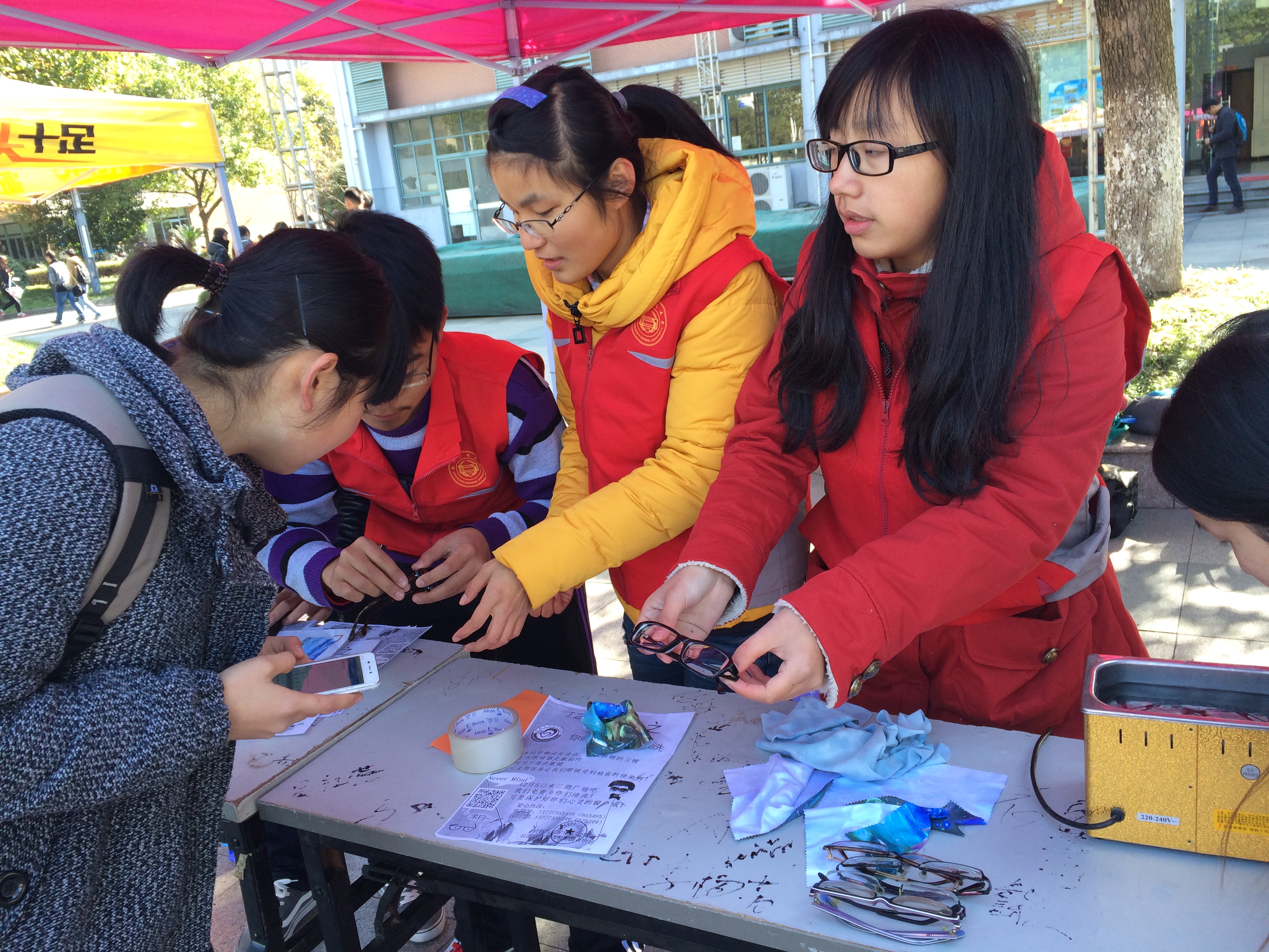 青协最真挚的祝福。送走最后一位前来清洗眼镜的同学,近两个小时的爱眼志愿活动正式宣告结束。