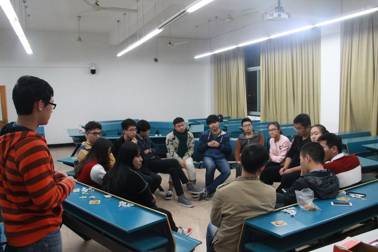 11月21日18:00,中文成人小说 “U-know”桌游社于A-414、415、416教室顺利举办“狼人杀之夜”活动,社联社长叶潇赟,副社长沃华栋到场主持活动。