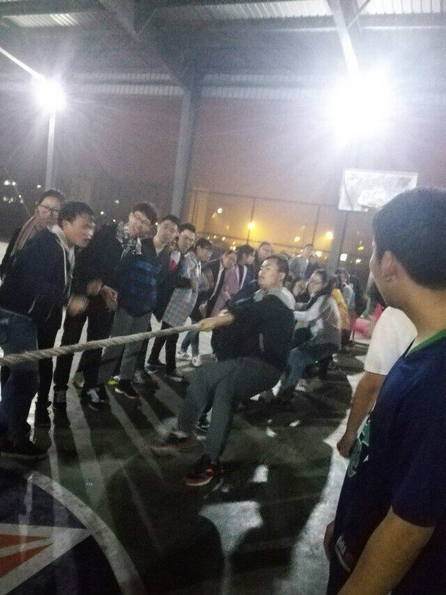 在拔河比赛中,应化141和化学141两者实力相差悬殊。比赛刚开始,化学141就以压倒性的优势拿下两局结束比赛。而应化151和高分子151两班人员实力相当,不分上下,场面陷入僵持状态,同学们一个个面红耳赤,身子全向后倾着,手里的绳子绷得越来越紧……最后在一片欢呼加油声中,应化151凭借微弱的优势险胜高分子151。