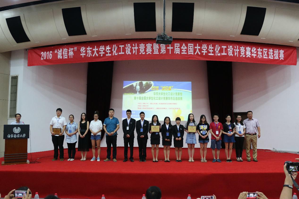 另悉,在2016“华东科技-陕鼓杯”第十届全国大学生化工设计竞赛决赛中,我校“Diamonds”代表队以其出色的设计和展示荣获全国二等奖以及华东赛区特等奖,这也继承了我校去年在此大赛中获得的优秀成绩。“咖喱给给”团队获得全国三等奖,“诺贝尔”团队以及“Carbon Burning”团队(队员:魏斌、刘欢欢、雷吉、胡晓君、乐宁)获华东赛区三等奖。本次大赛全国共有262所高校的991支队伍报名参赛,分华东、华南、华北、华中、东北、西北和西南七个赛区进行预赛,通过分区赛,最终选拔出了48支团队参加全国总决赛。