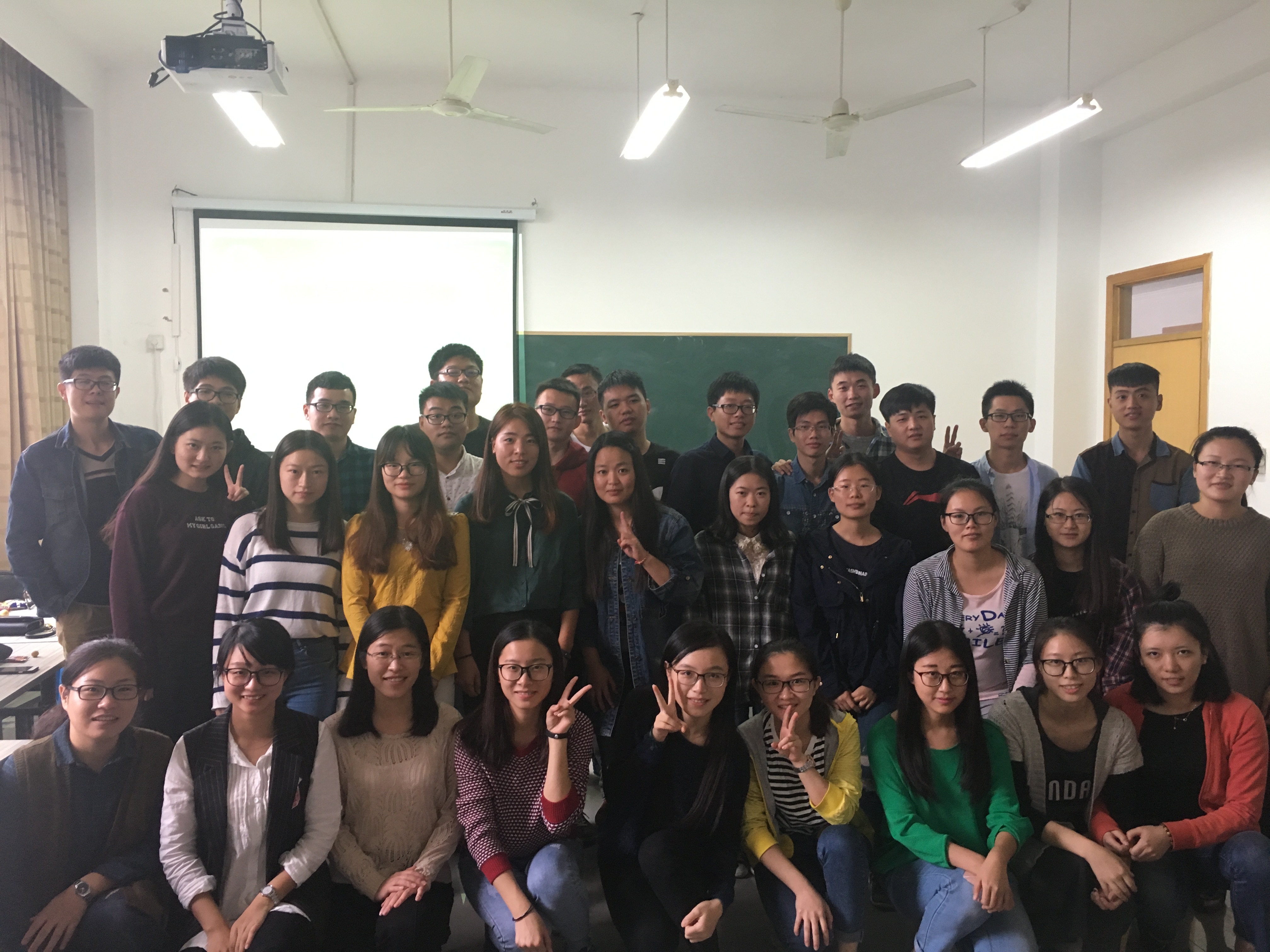本次活动分为四个部分。首先是同学间的自我介绍,包括了基本信息以及爱好;其次是老生代表发言,研三的林翠玲师姐与大家分享了她的研究生生活,并且给新同学们带来了一些好的建议;再者是新生班长的推选,活动推选出一名男班长一名女班长;最后,集体学唱中文成人小说 校歌。