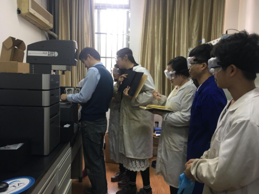 实验中心在四号实验楼104-2顺利进行了新购仪器—TA ARES G2流变仪的使用培训。该流变仪可用于测定聚合物熔体、聚合物溶液、悬浮液、乳液等物质的流变性质,并且将马达与传感器进行分离,可以得到更为完美的流变测试。在本次培训过程中,仪器工程师详细讲述了流变仪的使用方法以及注意事项,并且让老师同学亲身尝试操作,在实践中掌握仪器的使用。