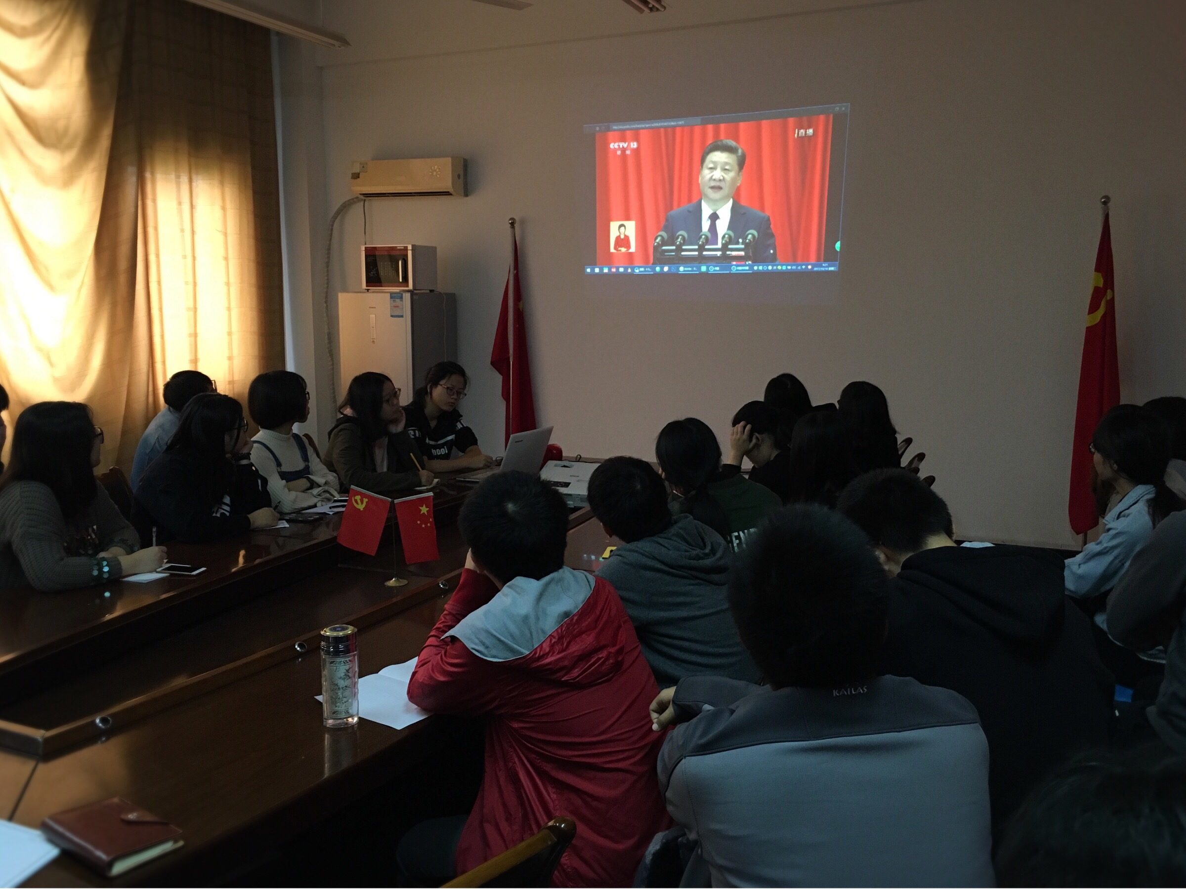 本次观看直播,使学院喜迎十九大的氛围更加浓厚。材化学院全体师生必将不忘初心,奋勇前进,为实现中华民族伟大复兴的中国梦奉献自己的力量。