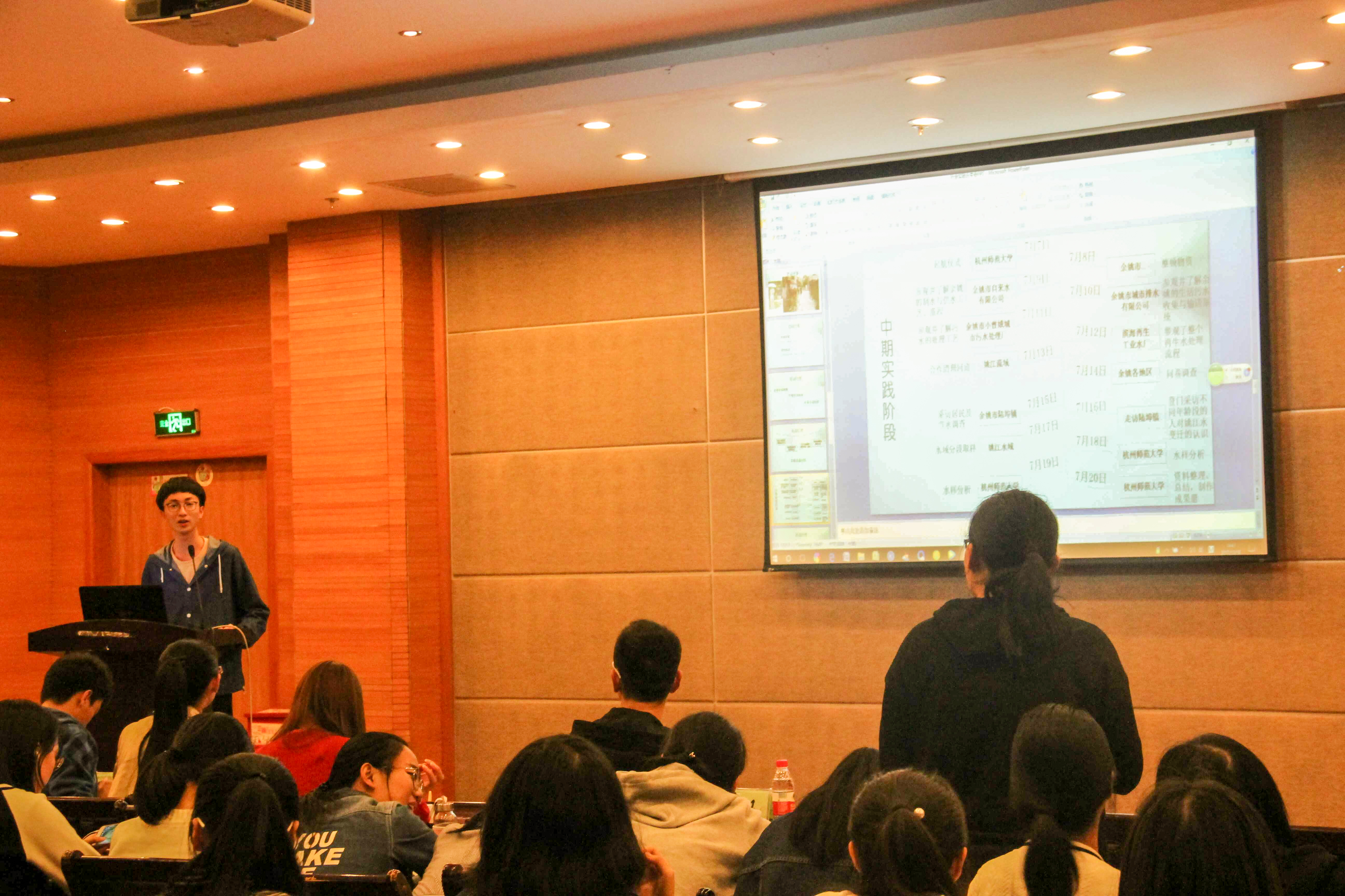 此次大会分为团日活动分享交流和暑期社会实践活动分享交流两部分。在首先进行的团日活动分享中,制药161和应化161的团支书分别向同学们展示了其丰富的团日活动内容以及他们在团日活动领悟体会的十八大精神和长征精神。接下来,“姚州净淼”、“共治五水 碧波吾愿”和“用心进行教育 以爱传承文化”三支实践团队借助视频、照片详细地为同学们介绍了暑期社会实践的构想、过程及成果,分享了各自的理念与收获。随后,化学161的团支书向同学们介绍了如何建设优秀团支部。每次分享交流后都设有提问环节,同学们踊跃提出自己的疑惑,主讲人均给出详细、合理的解释。最终,此次暑期社会实践暨优秀团日活动分享交流大会在热烈的掌声中落下帷幕。(文/薛露云 修改/柯许玉)