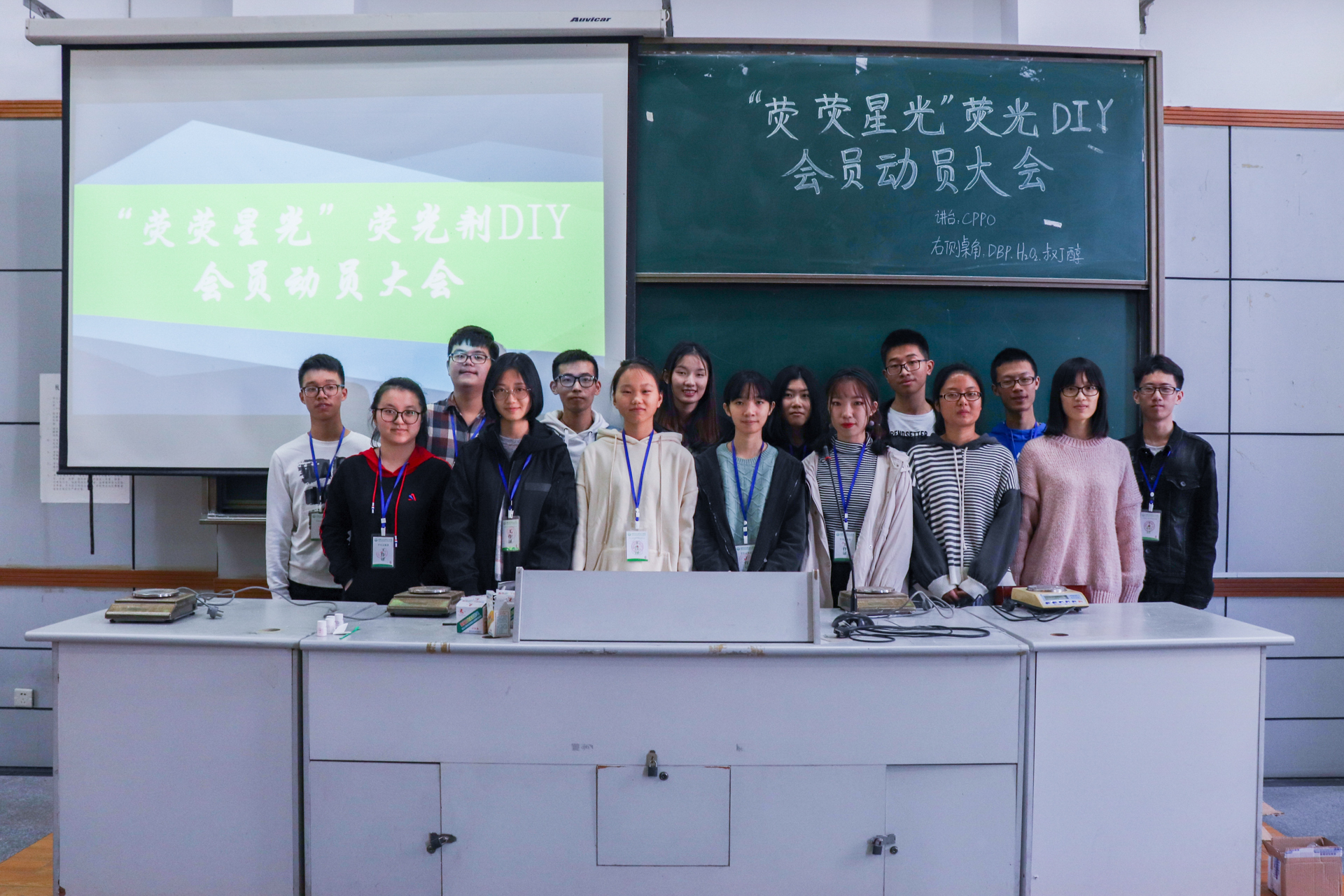 11月4日14:00,中文成人小说 “贵之烯”化学研究社于B-202顺利举办“荧荧星光”荧光剂DIY会员动员大会。社联主席张可,前任、现任社长及研究生、本科生代表受邀出席本次活动。现场的创作氛围十分浓厚,同学们都制作出了满意的作品。