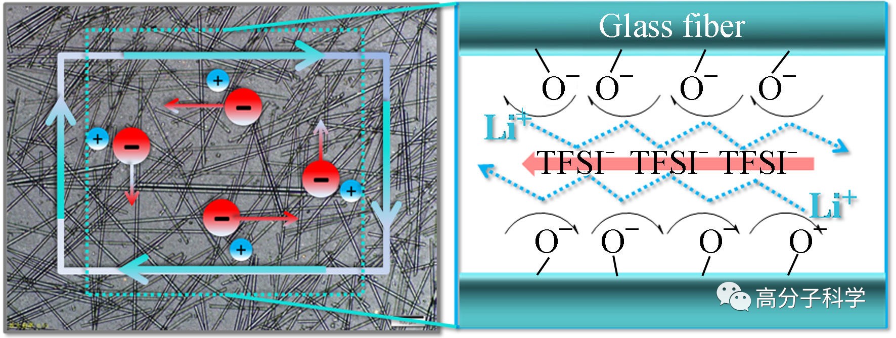图:有机盐在聚丙烯/玻璃纤维复合材料中的离子传递示意图