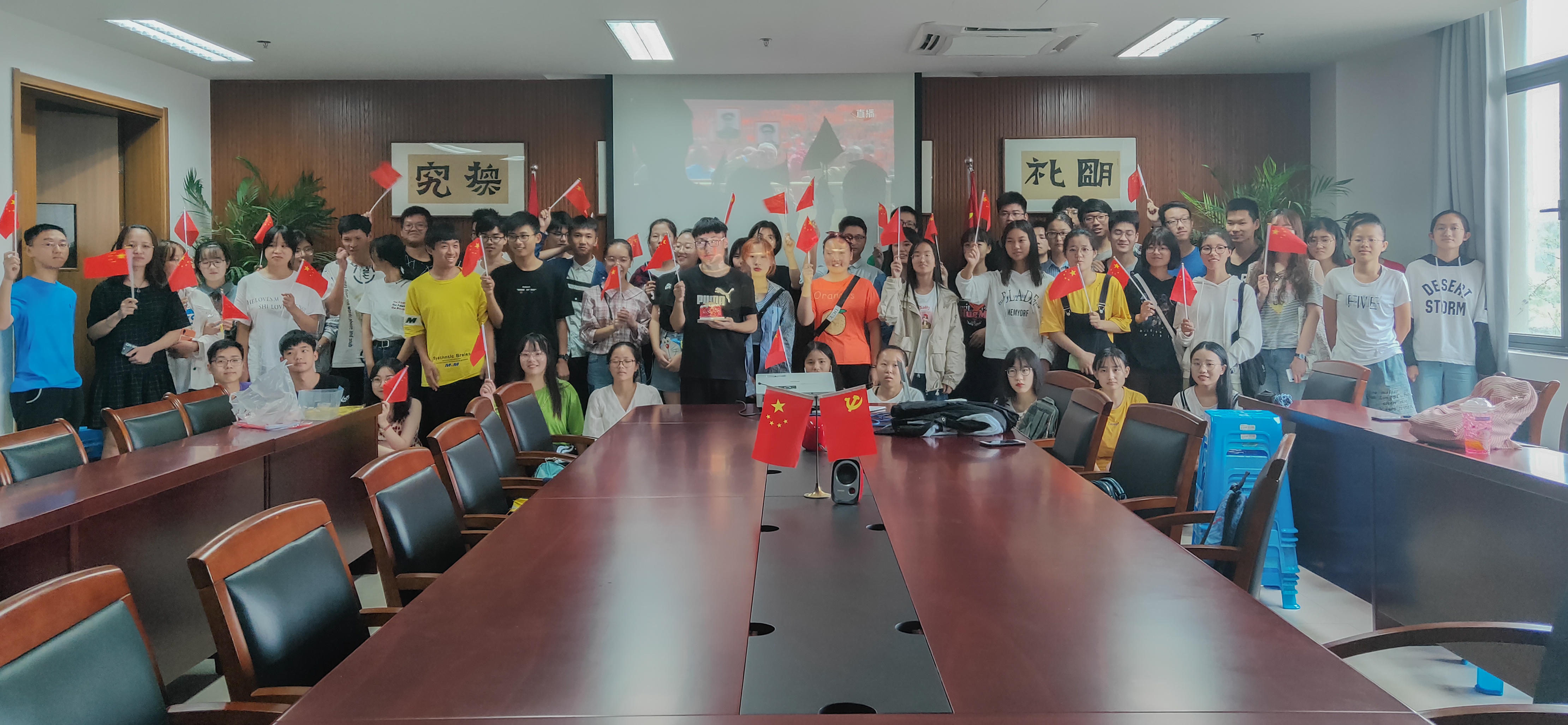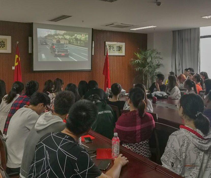 10月1日上午,祖国70周年华诞来临之际,中文成人小说 组织学生在17-204会议室收看国庆阅兵活动的现场直播,与广大中华儿女一起见证这激动人心的时刻。