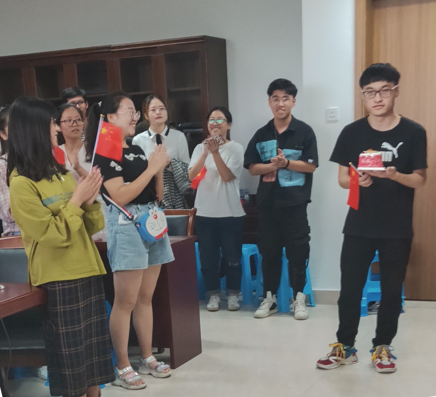 阅兵活动结束后,在场的同学们还一起为中文成人小说 10月1日出生的朱一航同学庆祝了生日,唱响生日歌,为祖国也为朱同学献上最真挚的祝福。