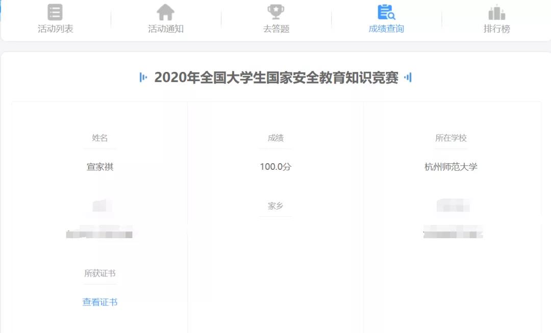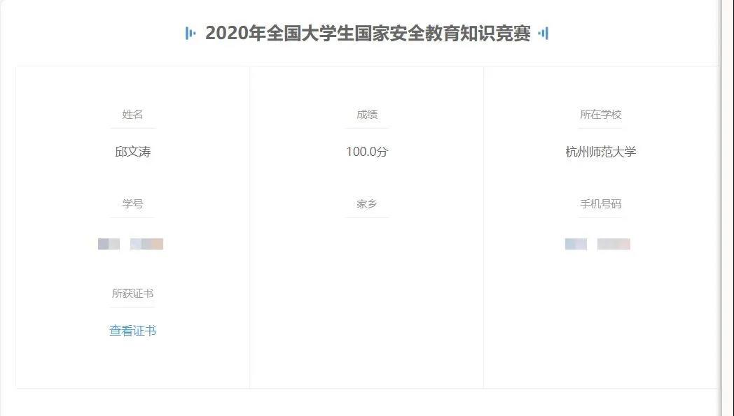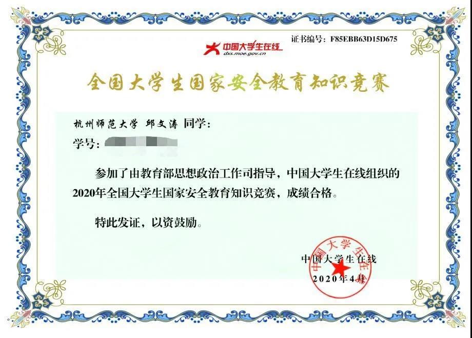 另外同学们还积极地参与了线上国家安全教育知识竞赛,不仅取得了优异的成绩,还巩固了对国家安全教育的学习。