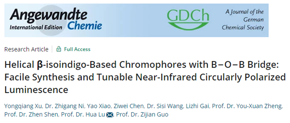 近日,中文成人小说 卢华教授课题组在近红外螺手性的分子设计方面取得重要进展,该研究以“Helical β-isoindigo-Based Chromophores with B−O−B Bridge: Facile Synthesis and Tunable Near-Infrared Circularly Polarized Luminescence”为题发表在国际化学领域权威期刊Ange. Chem. Int. Ed.上。
